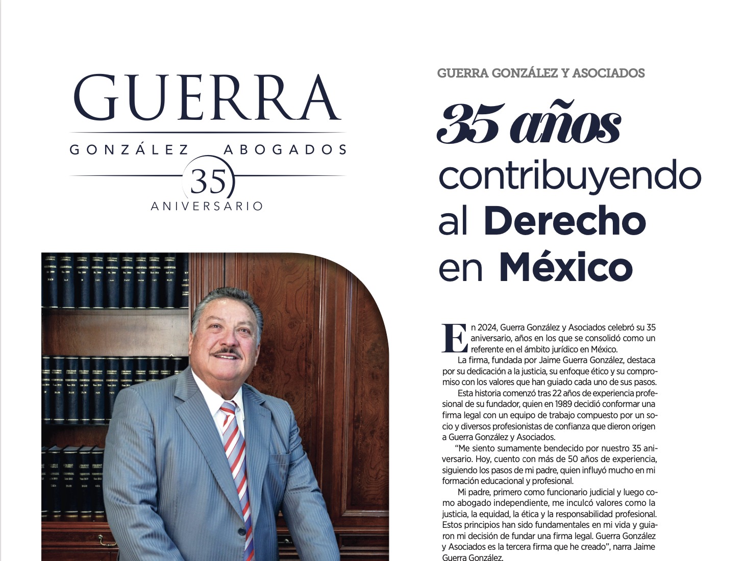 enero 20 Posted By: admin Posted In: Noticias , Prensa , Publicaciones Date: enero 20, 2025 0 533 Anuario 35 aniversario – Guerra Gonzalez Abogados Share This Artcle : Previous Post Latam Corporate Distress Expected to Persist in 2024; Affected Sectors May Include Retail, Agribusiness and Power Generation – Lic. Jaime R. Guerra Next Post Chambers & Partners Latin America 2026